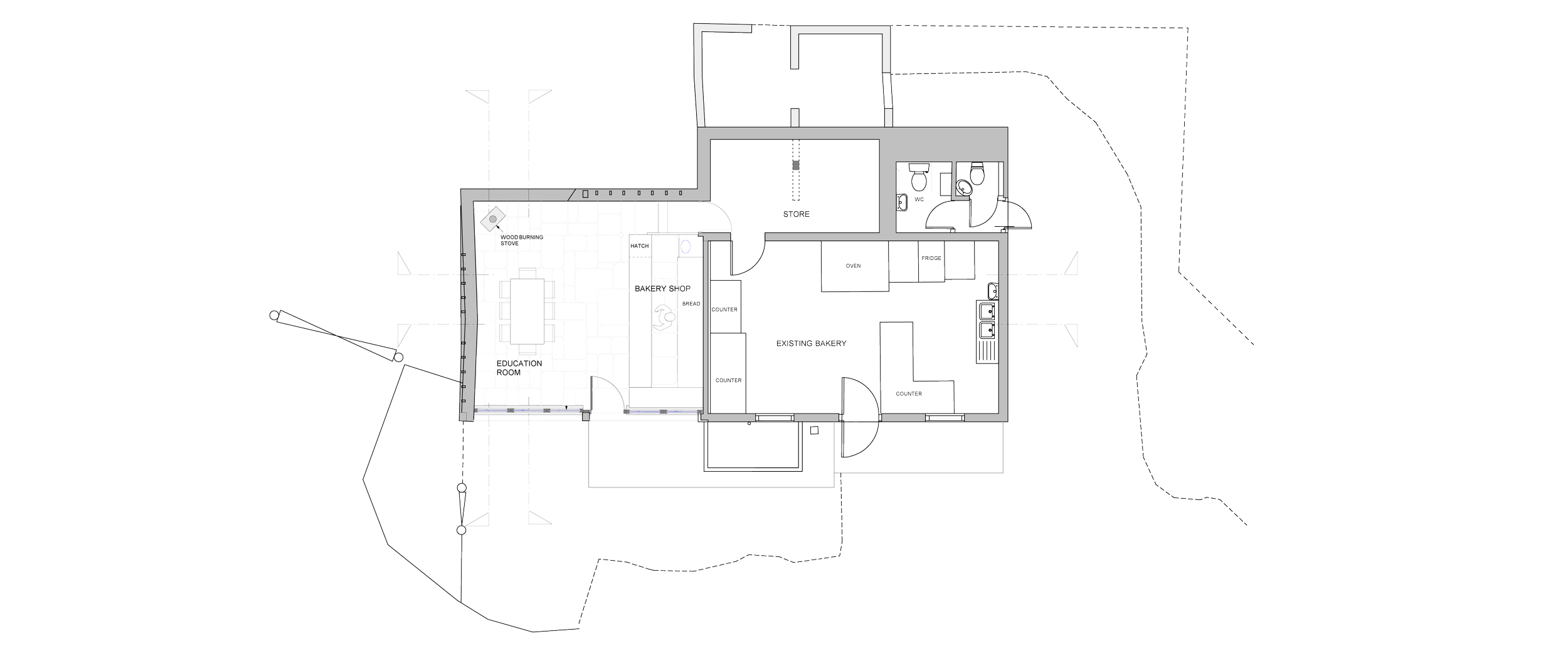The project involves converting an existing cart shed store adjacent to the bakery to a new bakery shop / educational talks, and lunch space for visitors on bakery courses and volunteers. Our scheme aims to preserve and repair the historic fabric of the cart shed whilst making some minor alterations, to stabilise the structure and upgrade the space to become a practical useable space, hence safeguarding the cart sheds future.